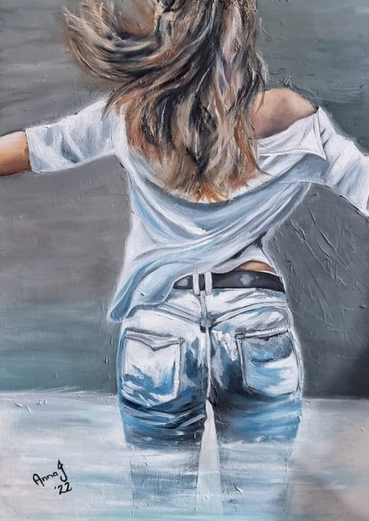 Anna Jacobs is an artist who was born in April 1977 and has a deep passion for creativity. She embarked on arts classes with Claudi Orlandini-Pira in October 2019 until June 2023. Her artistic inspiration comes from a variety of sources, including Cecile Desserle, Maria, her friend Christelle Robbetze, and Rici Allison, an artist whose class she attended.