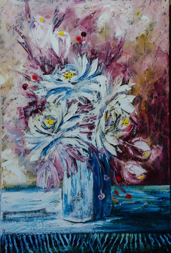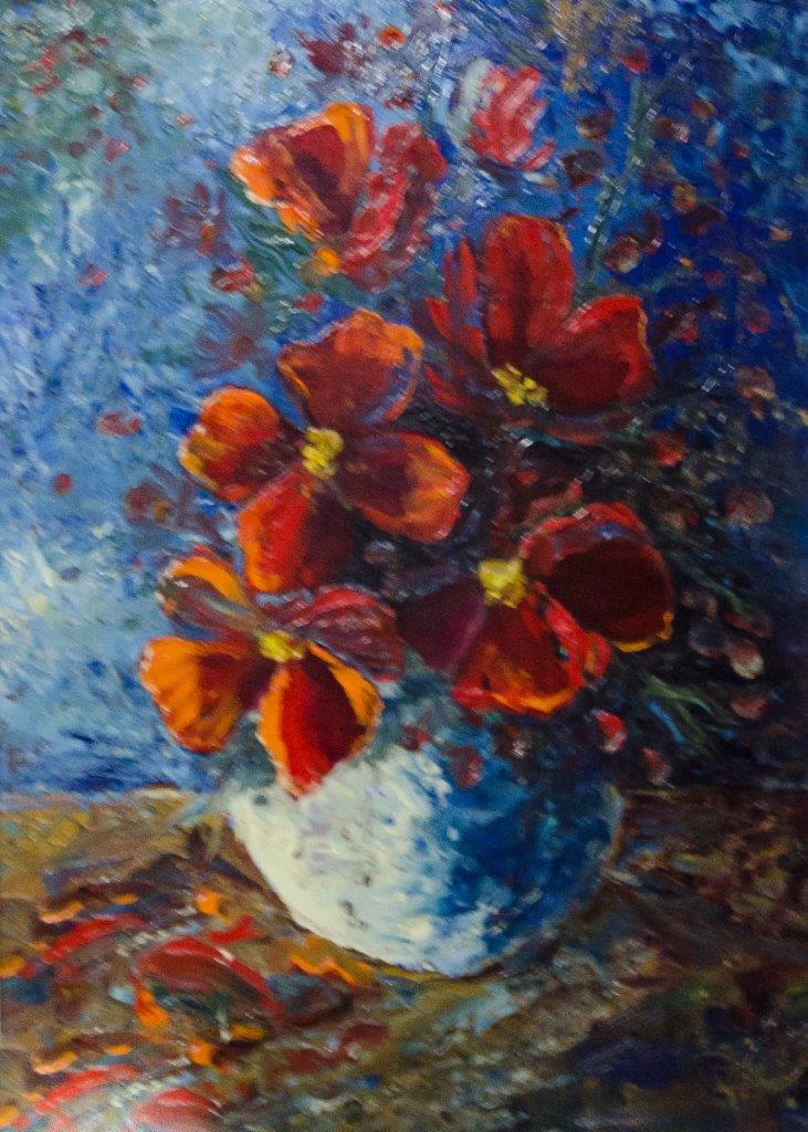It’s notable that his preferred subjects are landscapes and flowers, although he also occasionally delves into animals and portraits. His preference for using primary colors such as red, yellow, and blue indicates a bold and vibrant artistic style.