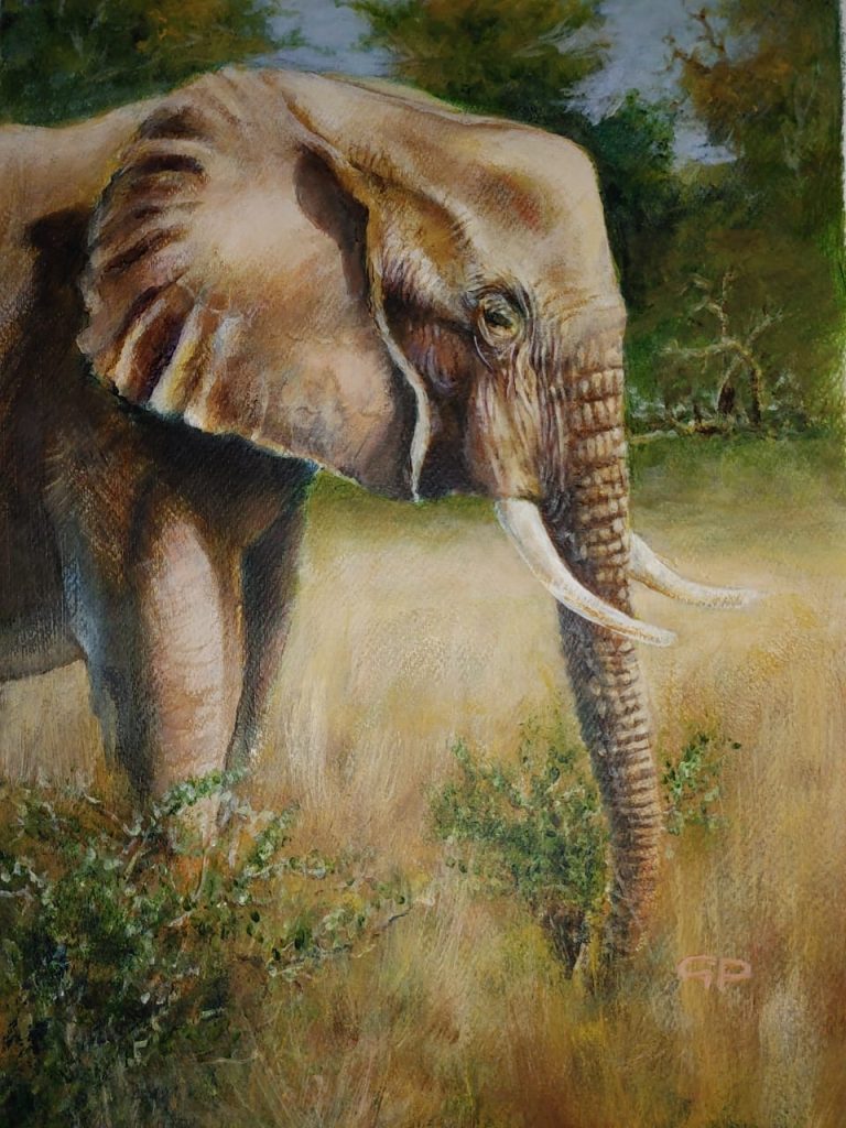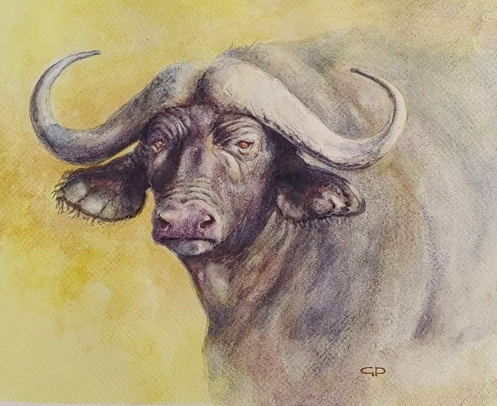 This is the awareness he tries to capture in his work, particularly the beauty and tranquility in nature. Life has enough unpleasantness and challenges of its own and he endeavours to concentrate on the positive and the beauty around us. We are blessed to live in a country of sunshine, varied features and fauna and flora. Animals are our companions and co-travellers on our life journey. Most of us have interactions and special moments with animals in our lives. This selection of paintings depicts some of the moments of beauty and our companions in Africa.